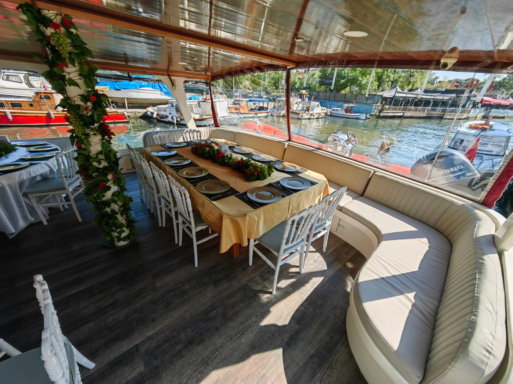 Yemekli Kapasite 60 Kişi , Kokteyl Kapasite 60 kişi .Günlük, saatlik ,akşam ,gündüz kiralık gezi teknesi.