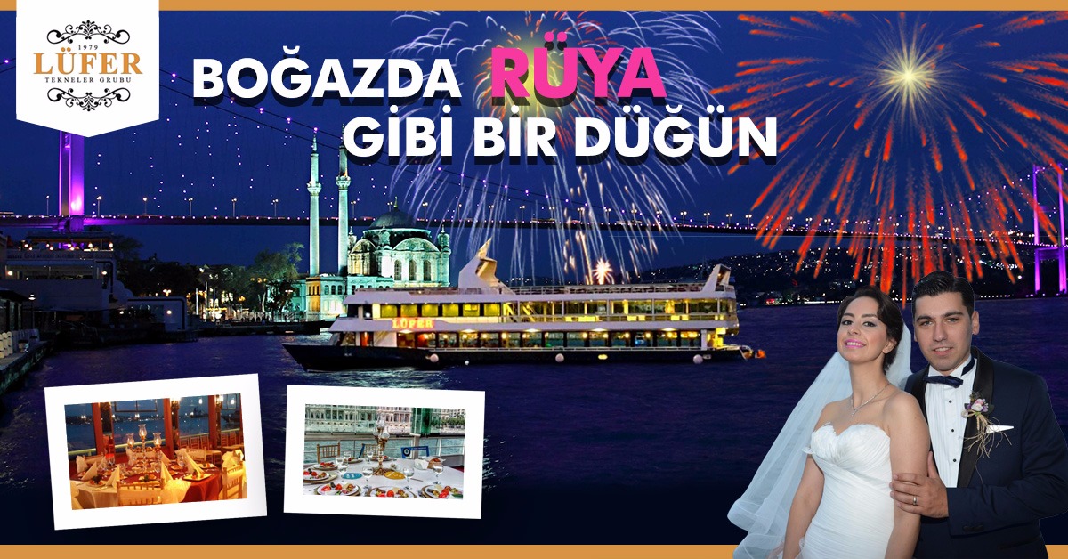 Teknede düğün kampanya fiyatlarına,seçeceğiniz menü, 3 saat boğaz turu,15 adet aile fotoğrafı, video çekimi,masa sandalye süslemesi, gelin damat masası, girişte veya çıkışta volkan gösterisi,profesyonel DJ performansı dahildir.