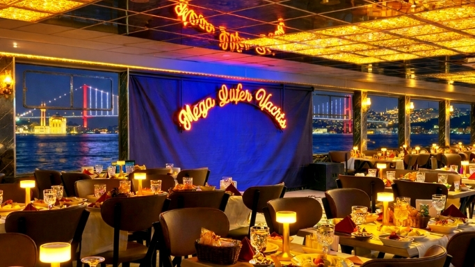 Yemekli Boğaz Turları .MEGA LÜFER YATLARI Kalitesi ve güvencesi ile her akşam kesin kalkışlı yemekli,müzikli ,İçkili,sahne performansları eşliğinde lüks boğaz turlarımız ile İstanbul'un büyülü dünyasını yaşayın!